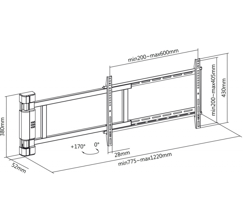 HP29-1L, Motorisierter & schwenkbarer Wandhalter für Flachbildschirme, für Bildschirme 32" - 75" (81 -190 cm), Belastung bis 50 kg, mit RF Fernbedienung