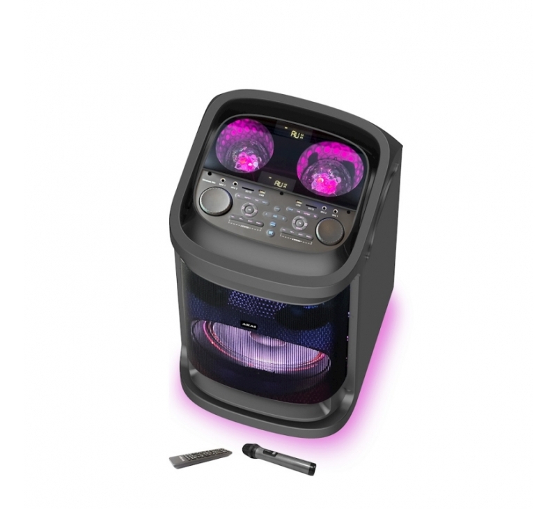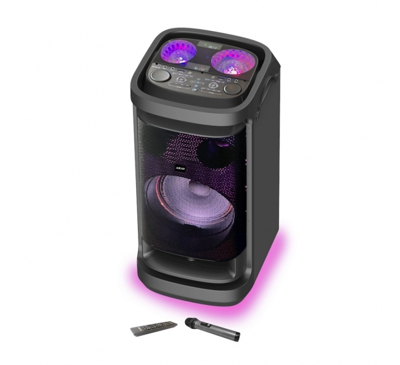AKAI DJ-BY6L, aktiver mobiler Party-Lautsprecher mit Akku & Discoball-Lichteffekten