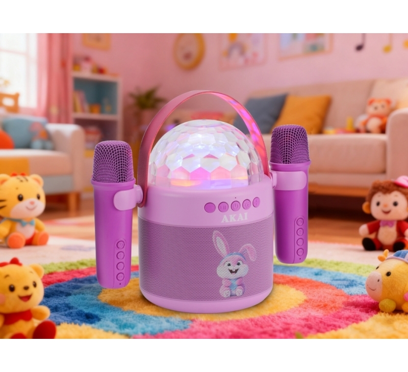 AKAI JoyBox Kids, Karaoke Lautsprecher Set für Kinder JoyBox Kids mit 2 kabellosen Mikrofonen, Bluetooth 6.0, RGB LED