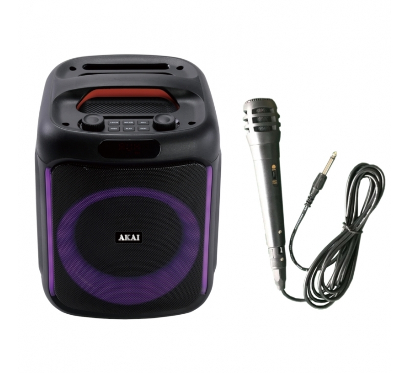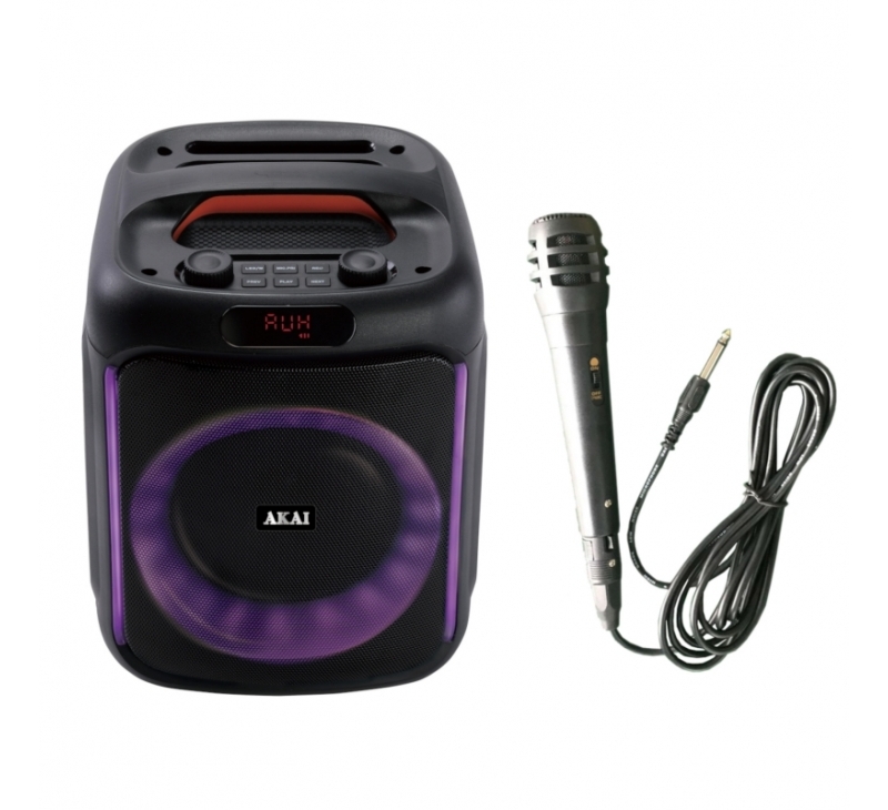AKAI ABTS-V20, tragbarer Bluetooth Lautsprecher mit Mikrofon, LED-Display, FM-Radio und USB/TF-Wiedergabe