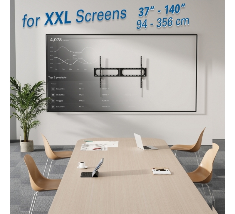 Für Bildschirme 37" - 140" (94 - 356 cm), bis zu 125 kg, Wandabstand 32 mm, VESA 300x200 bis 1200x800