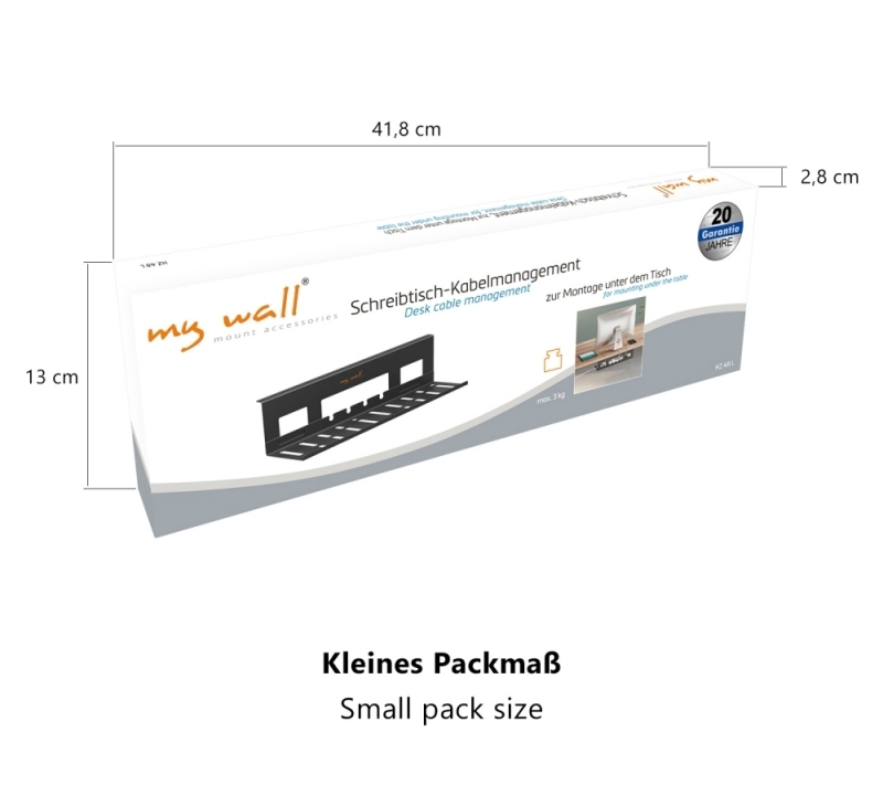 HZ48L, Kabelmanagement für den Schreibtisch, Zur Montage unter dem Tisch, offenes Design, 400 x 140 x 100 mm