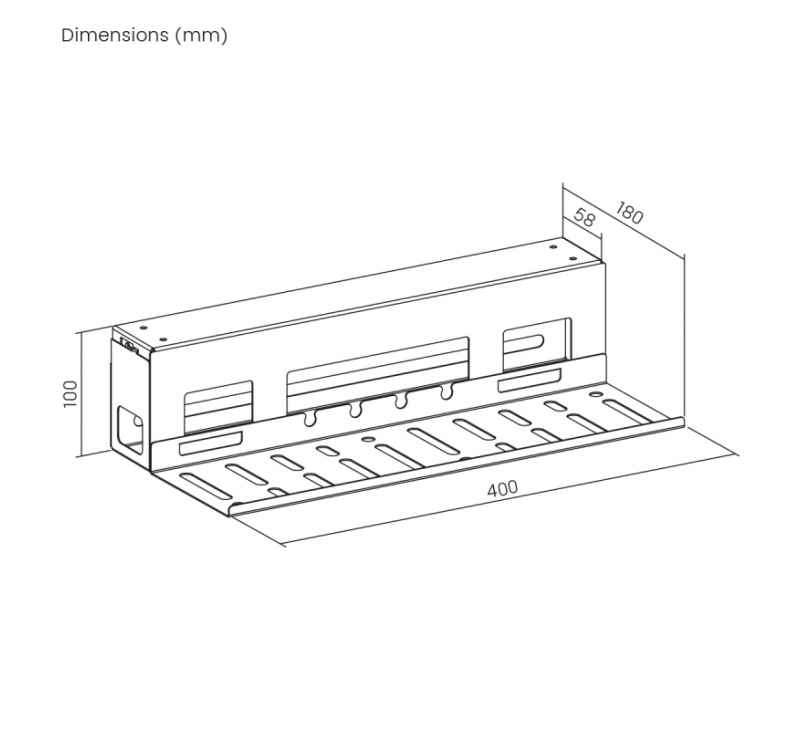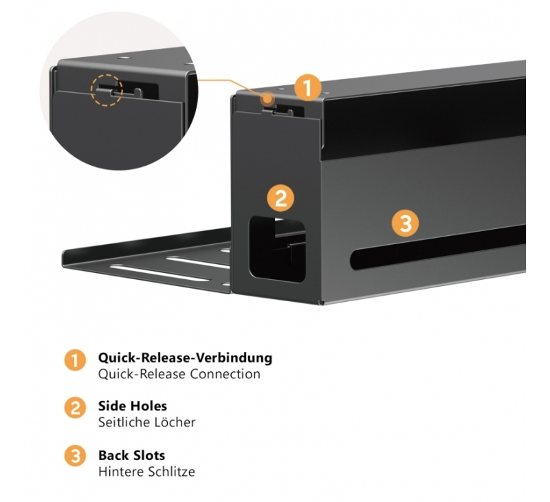 HZ49L, Kabelmanagement für den Schreibtisch, Zur Montage unter dem Tisch, Slide-in-Box, 400 x 180 x 100 mm