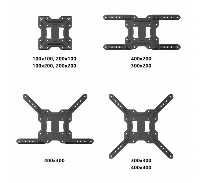 - VESA 100x100,100x200,200x100,200x200, 200x300,300x200,200x400,400x200,300x300,400x300,400x400