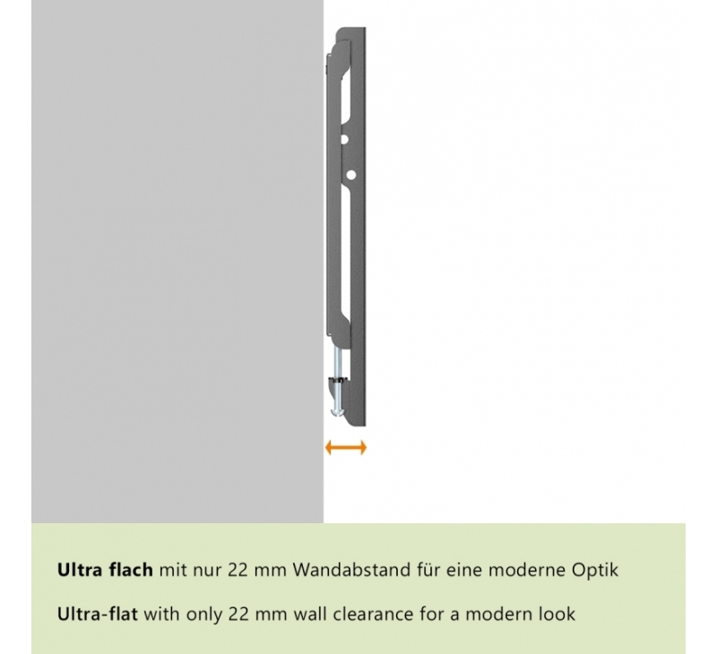 HEG1L, TV Wandhalterung, 13" - 43" (33 - 109 cm), Belastung bis 45 kg, Wandabstand 22mm, offenes Design