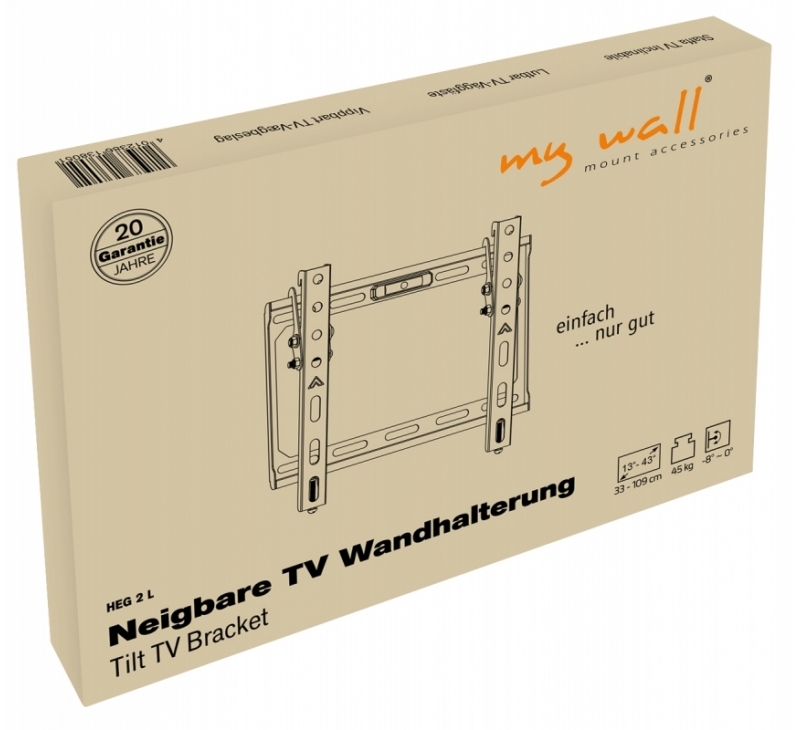 HEG2L, TV Wandhalterung neigbar, 13" - 43" (33 - 109 cm), Belastung bis 45 kg, neigen, flacher Wandabstand