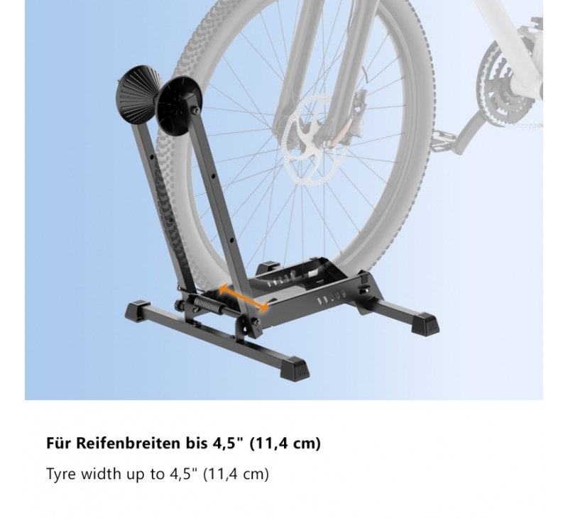 Klappbar, für Reifenbreiten bis 4,5" (11,4 cm), Raddurchmesser 20" - 29" (50,8 - 73,7 cm), belastbar bis 35 kg